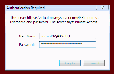 Next, you'll be prompted to access the password protected directory's username and password which was provided at end of installation above.