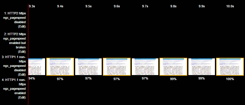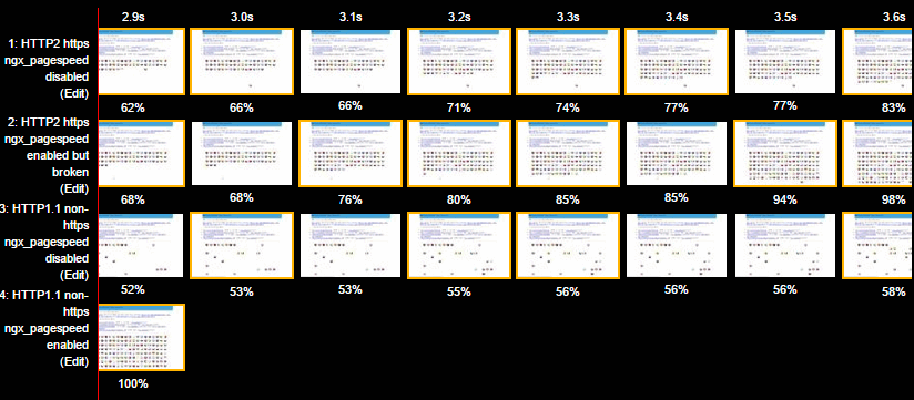 HTTP/1.1non-https + ngx_pagespeed disabled [webpagetest.org result] - https://centmin.com/flags/ -