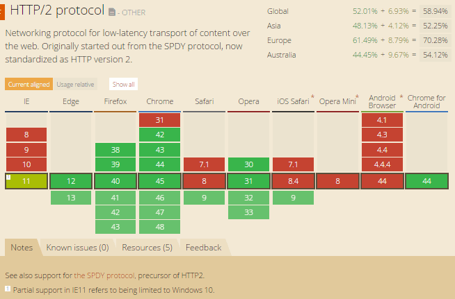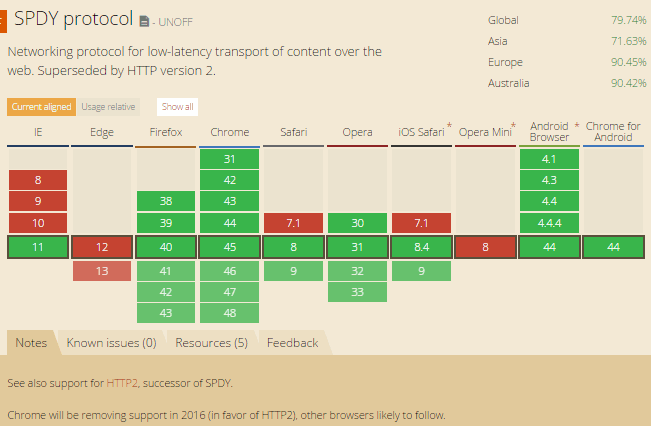 HTTP/2 browser compatibility isn't as wide spread compared to SPDY right now according to information at caniuse.com.